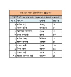 गायन प्रतिभा भएर पनि ओझेलमा परेका प्रतिभाहरुको लागि सांगितिक क्षेत्रमा भविश्य स्थापना गर्ने उद्देश्यका साथ संचालन गरिएको पूर्वी स्टार गायन प्रतियोगितामा उत्कृष्ट १० प्रतिस्पर्धीहरु छानिएका छन् । प्रदेश नं. १ को ऐतिहासिक शहर धरानबाट संचालन भईरहेको यस शो को टप–१५ बाट टप–१० छनौट भएको पूर्वी स्टार सिजन–१ का प्रबन्ध निर्देशक टिआर सेनेहाङले जानकारी दिनुभयो ।