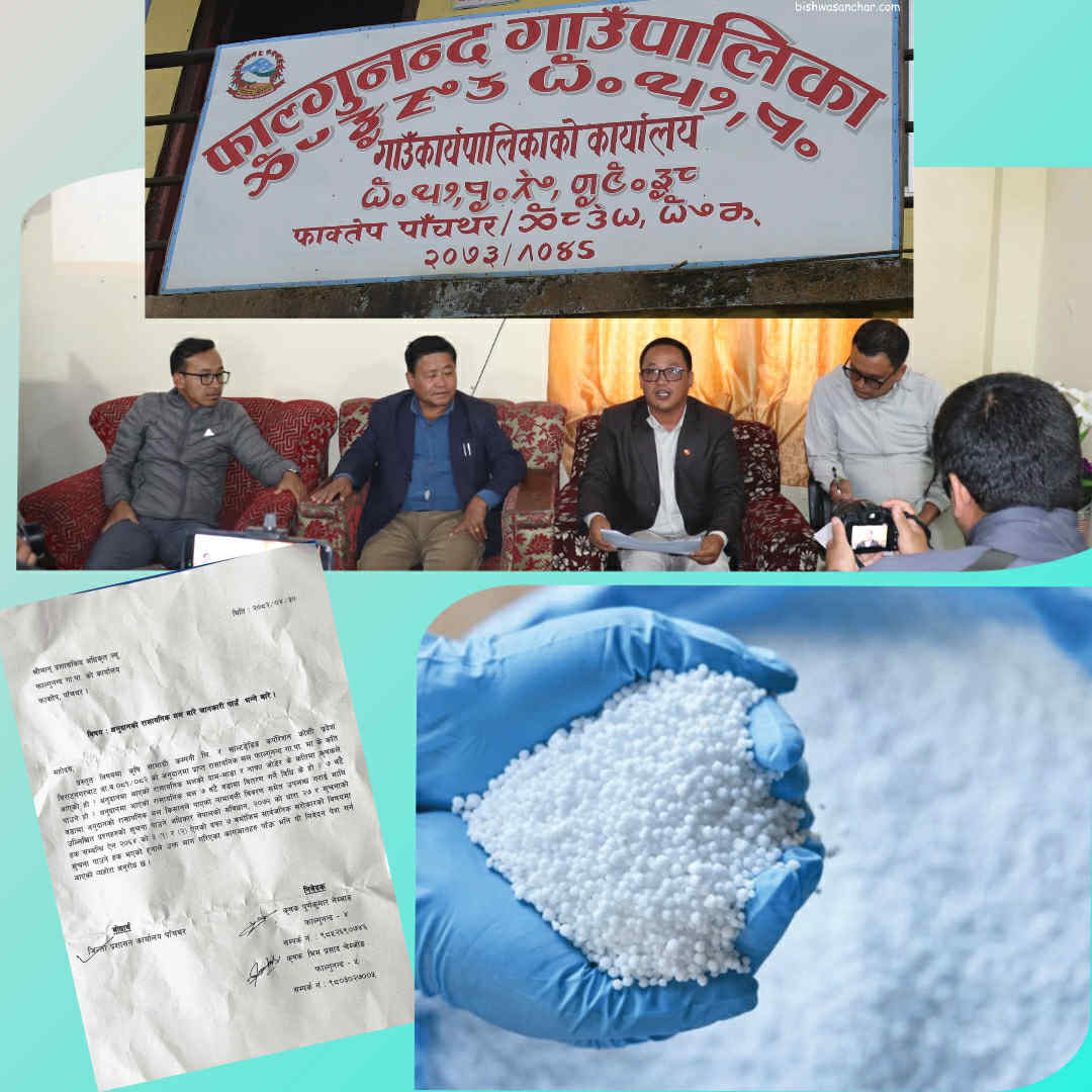 पाँचथरः अनुदानको रासायनिक मल वितरणमा पारदर्शिता माग गर्दै स्थानीय कृषकहरूले दिएको निवेदनपछि फाल्गुनन्द गाउँपालिकाले औपचारिक रूपमा पत्रकार सम्मेलन गरेको छ। पालिकाले बुधबार आयोजित पत्रकार सम्मेलनमा मल आपूर्ति, वितरण प्रक्रिया र मूल्य निर्धारणका विषयमा जानकारी दिइएको हो। गाउँपालिकाले संघीय सरकारले जारी गरेको अनुदानको मल वितरण व्यवस्थापन निर्देशिका २०७७ को आधारमा समिति गठन गरेर वितरण प्रक्रिया अघि बढाइएको स्पष्ट पारेको छ।