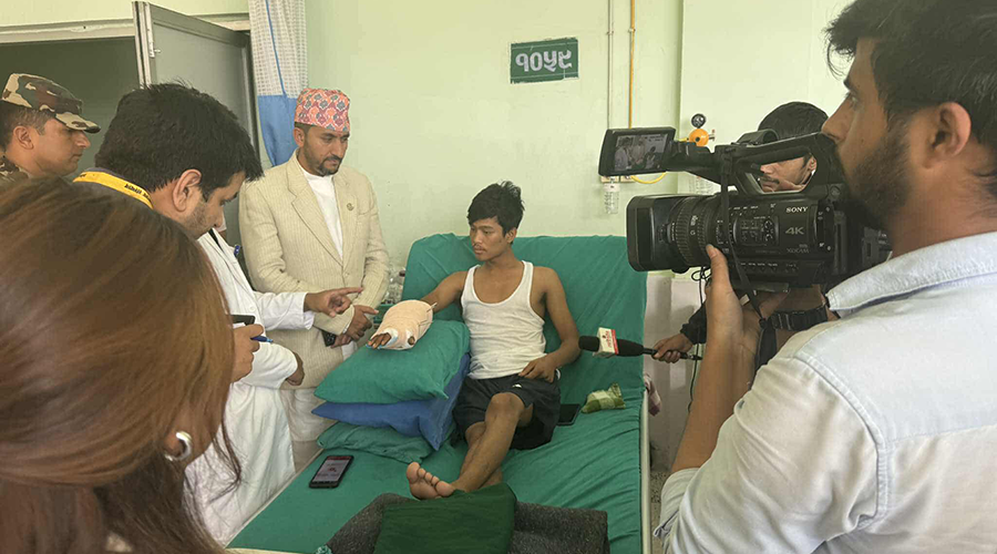 काठमाडौं : सञ्चारमन्त्री जगदीश खरेलले जेनजी आन्दोलनका घाइतेहरूलाई भेटेर उनीहरूको स्वास्थ्य अवस्थाबारे जानकारी लिएका छन् ।